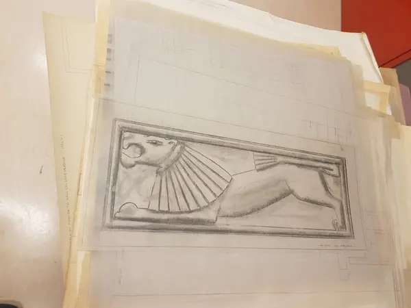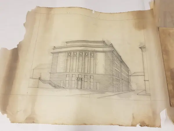 Det var arkitekten selv som tegnet ornamenter slik vi ser dem her. Så sent som i august 1940 produserte arkitekten Ole Landmark tegninger, og gav sine instruksjoner til underleverandører i anbudsprosesser. Han listet opp hvilke deler som skulle behandles, hvordan det skulle skje og gav spesifikasjoner for fargevalg, antall malingsstrøk, og overflatebehandling spesifisert på detaljnivå rom for rom.