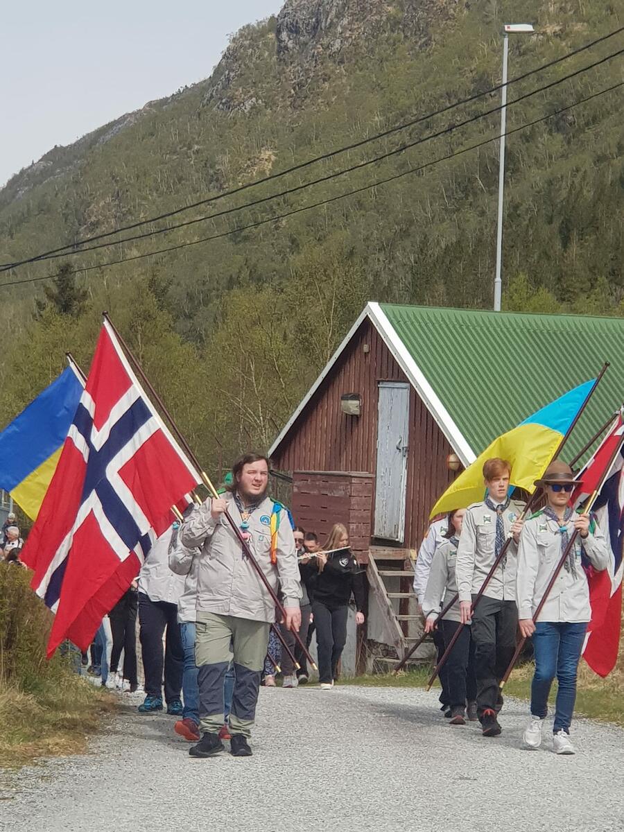 Leiren var på fredsarrangementet i 2022 både pyntet med norske og Ukrainske flagg.