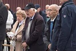 På bildet ser vi to av veteranene som har pleid å delta på markeringene i Espeland fangeleir, Arvid Abrahamsen og August Rathke. Begge gikk bort i løpet av 2022.