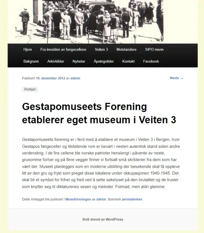 Som vi ser av kopien her inneholdt innlegget informasjon om bakgrunnen for etablering av foreningen, og ble publisert av forfatteren "admin" i kategorien "Museforeningen".