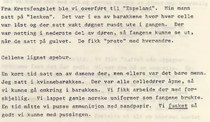 Nancy Landås satt fengslet både i Gestapohuset og i Espeland fangeleir. Fangejakken som Landås brukte er nå stilt ut i utstillingen her. Få kvinner satt på enecelle, men vi kjenner til at minst en kvinne ble satt i isolasjon.