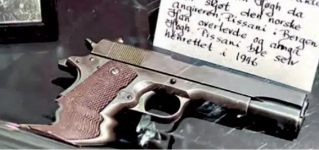 Lars Martin Høgh benyttet denne pistolen da han forsøkte å likvidere angiveren Eilif Pisani. Han lyktes ikke i forsøket og Pisani overlevde. Høgh fikk dødsdom av den tyske okkupanten. Under krigsoppgjøret ble imidlertid Pisani dødsdømt, og henrettet på Sverresborg i 1946.