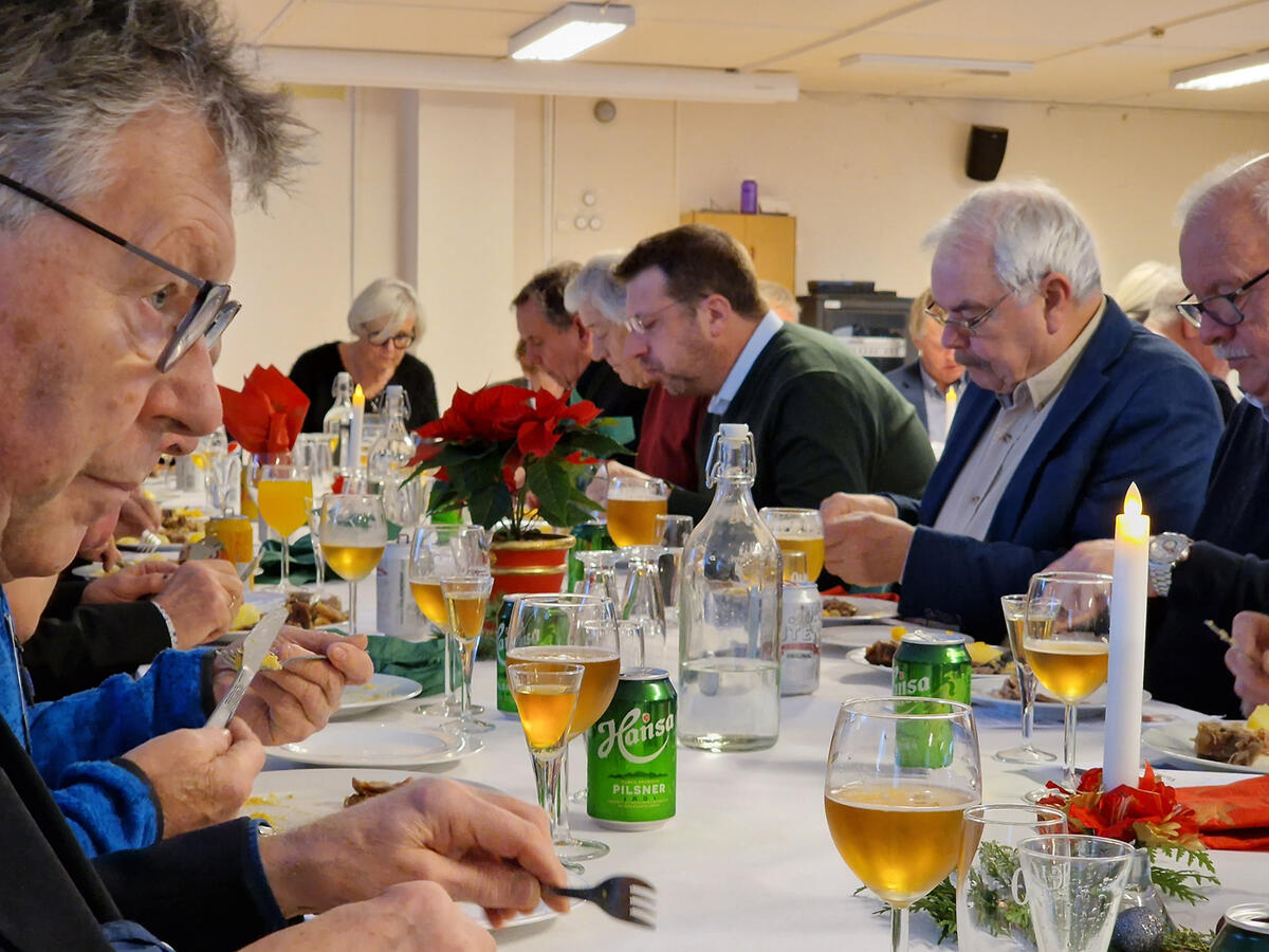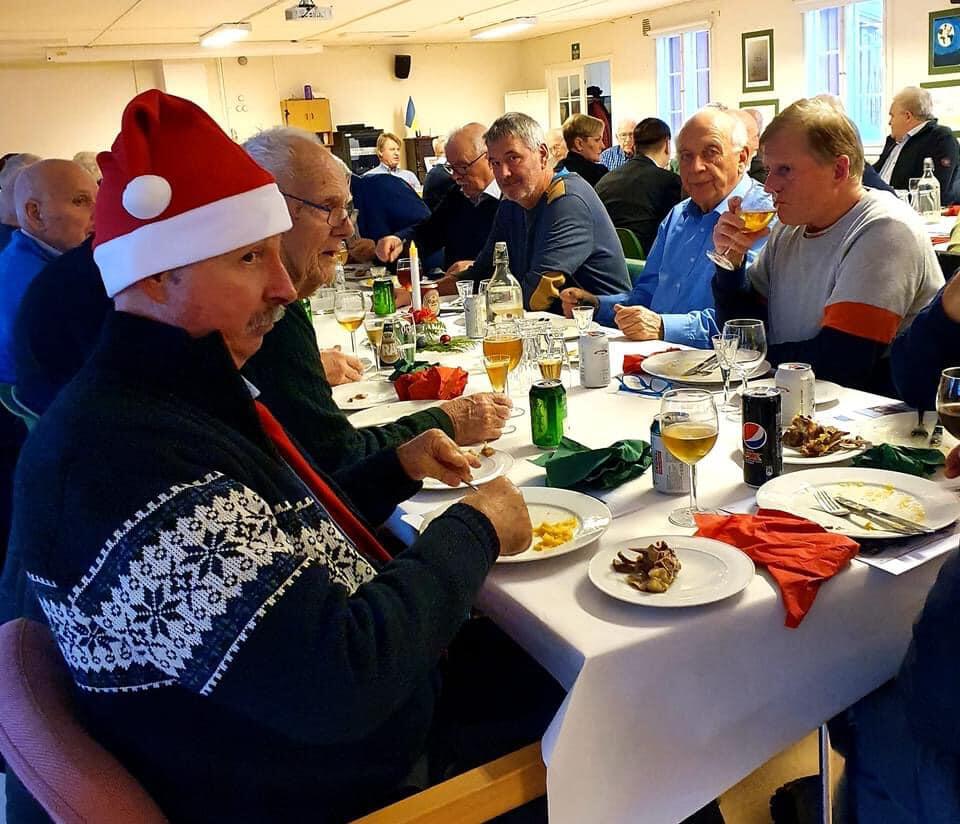 Vanligvis er Bjørn Ottosen venneforeningens frivillige fotograf og den som står bak kameraet. Her er Bjørn kommet skikkelig i julestemning og fått mat på tallerkenen han også.